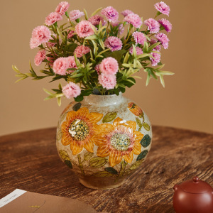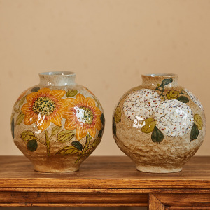 谷水耕花瓶装飾品リビングルームフラワーアレンジメント景徳鎮セラミック花器中国のレトロな手描きの装飾陶器ポット