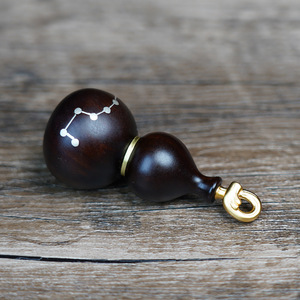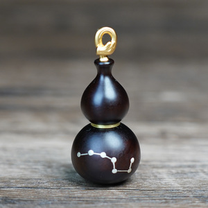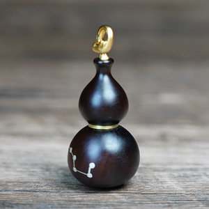 天然雷撃ナツメ木翡翠化七星ひょうたんペンダント精巧に彫られた平和と祝福の装飾品 DZ 木彫り道教用品