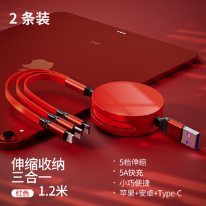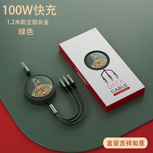 1対3充電ケーブルデータケーブルスリーインワン100ワット高速充電格納式マルチヘッド機能ギフトに適しています