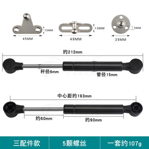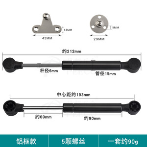 黑色短款20极简铝框玻璃门支撑杆6寸8寸窄边液压气撑杆上翻气动杆