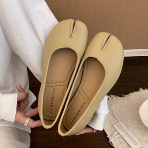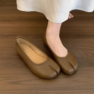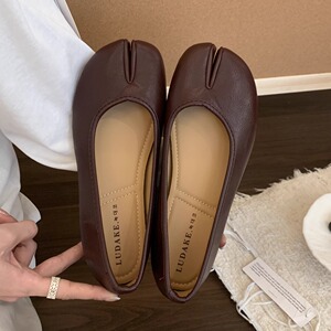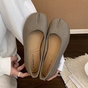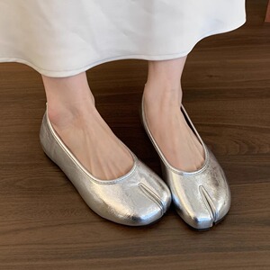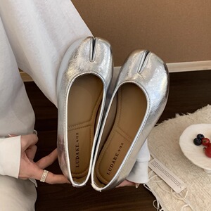 内增高分趾猪蹄鞋银色单鞋女平底春季新款软皮奶奶鞋牛马蹄豆豆鞋