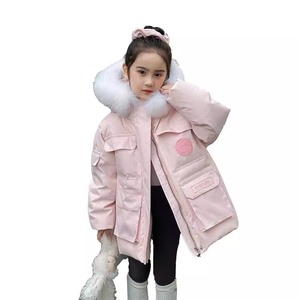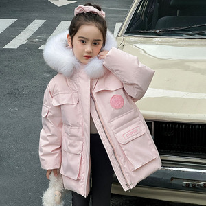女の子の毛皮の襟の作業服ミッドレングスダウンジャケット新しい韓国スタイルの子供用パーカーウォームジャケット冬ジャケット