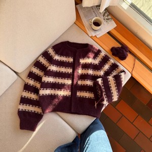 2025 新しいソフトでワックスのような小さな香りのセータージャケット女性のデザインストライプニットカーディガンショート秋と冬のセーター