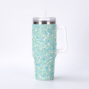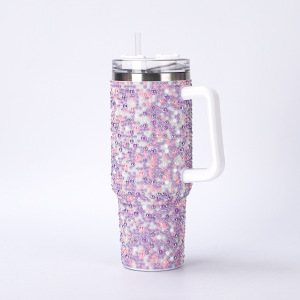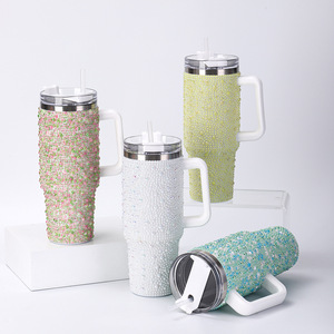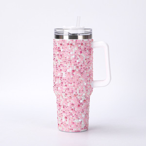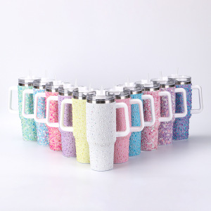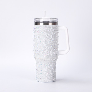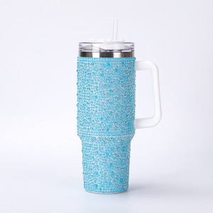 クロスボーダーステンレススチールパール断熱カップ大容量パールカーカップ40オンスハンドルストローダイヤモンドアイスカップ