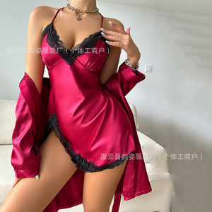 新しいスタイルのサスペンダー付きナイトドレス、セクシーで魅力的なランジェリーセット、欧米風アイスシルク下着、ナイトガウン、ホームウェア、女性用夏用パジャマ