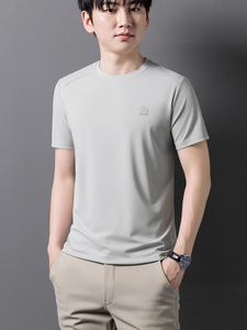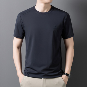 ラウンドネック夏メンズ半袖新しいルーズトレンディカジュアル半袖ファッションアイスシルククールメンズTシャツドロップシッピング