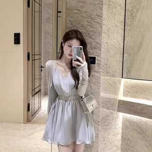 JustQin 6/27 ブルーアイランド新しい夏のウエストショートスカート気質シフォンスカートドレス女性のための