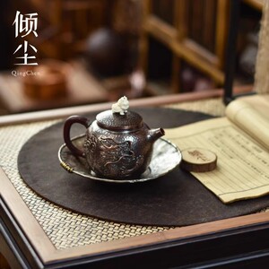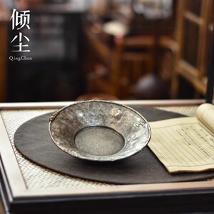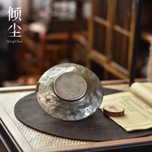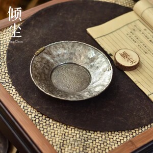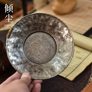 纯锡圆形小壶承全手工锻打补丁破旧风干泡盘足锡茶点盘做旧侘寂风