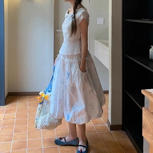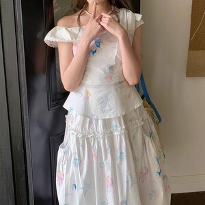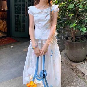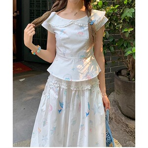 "幻梦海"2025夏新款小众减龄裙子套装斜领修身上衣花苞