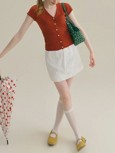 打底衫两色针织基础温柔法式通勤小个子女短款短袖上衣