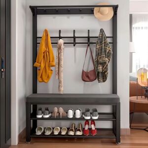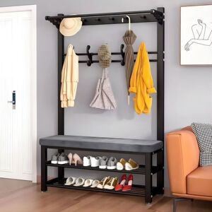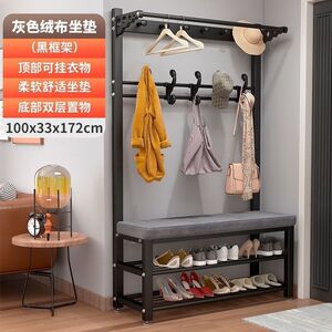 黒とグレーのベルベット-100cm [靴スツール+コートラック]