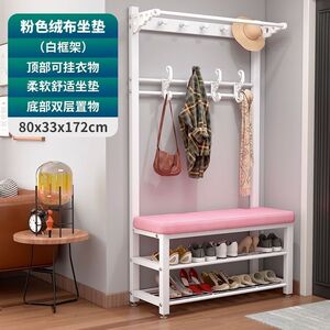 ホワイトピンクベルベット-80cm [シューズスツール+コートラック]