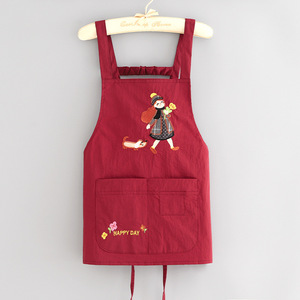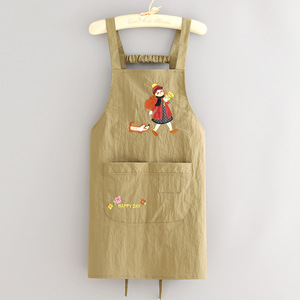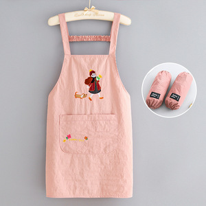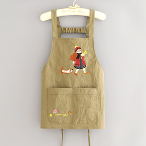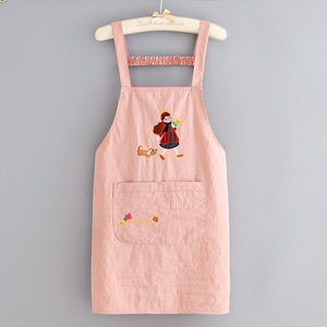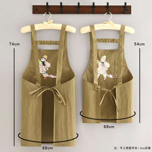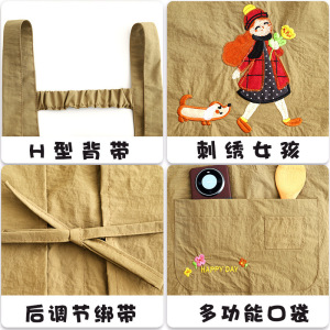 韩版防泼水刺绣围裙家用厨房做饭围腰防污透气餐饮上班专用工作服