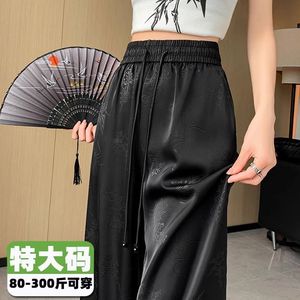 【大码80-300斤】新中式提花阔腿裤女夏季薄款冰丝垂感宽松休闲裤