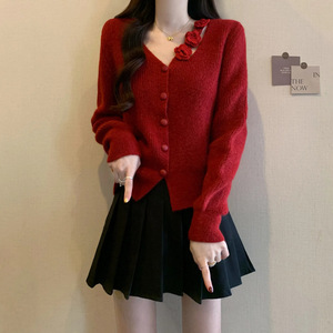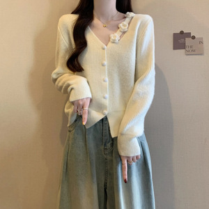 2025秋冬新款小香风韩系针织开衫温柔花朵甜美清新法式优质毛衣女