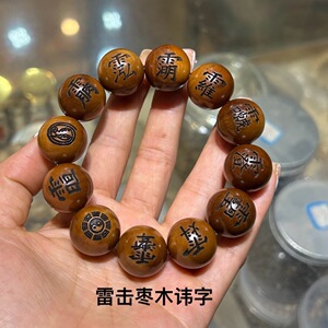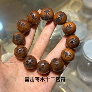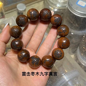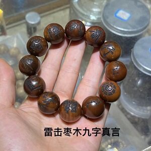 雷击木枣木20雕刻手串木讳字十二道密符十字天经九字真言手串批发