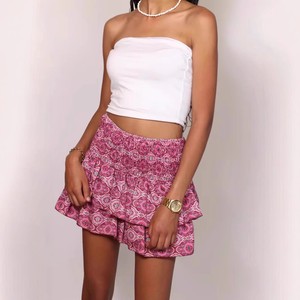 2025 新しいアマゾンヨーロッパとアメリカの女性のスカートプリーツスカートフリルプリントスカートファッション花柄ショートスカート