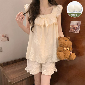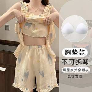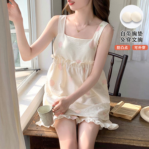 女性用胸パッド付きサスペンダーナイトガウン、夏用薄手で涼しいパジャマ、大きいサイズ、甘くて爽やかなホームウェア、屋外で着用可能