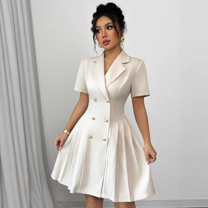 2025 Amazon AliExpress 夏新作ソリッドカラー半袖ウエストダブルブレストドレス婦人服