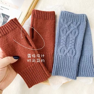 秋冬の女性用手袋、ハーフフィンガーレスハーフフィンガーグローブ、学生用筆記用ウールニット暖かい手袋、クロスボーダーサプライ