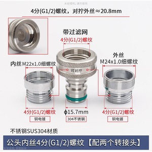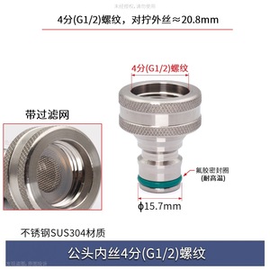 【684+432】【304ステンレス】4分管、セルフロック式メス継手(市販のフィルターによっては、このメス継手と互換性がない場合があります)