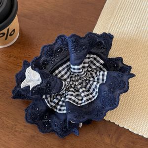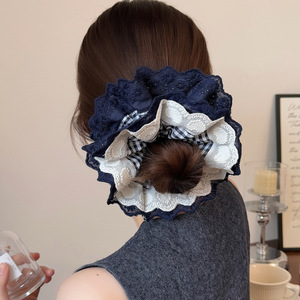韓国ネイビーチェック柄レースヘアゴム女性用、高級ヘアゴム、ヘアゴム、ボールヘアゴム、ヘッドバンド