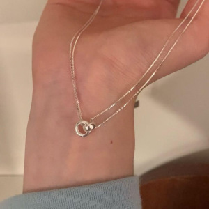 韩国ins极简风圆环双层S925纯银 项链女款新款小众百搭锁骨链
