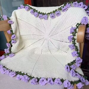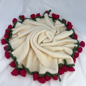 手作り DIY 完成品ローズブーケブランケット織り完成品ウールブランケットフープ編み花ブランケットフラワーかぎ針編みブランケット