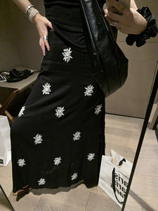 フランスの高級ヘビーウェイト刺繍レースステッチプリントハイウエストフィッシュテールスカートレディースサマーハーフレングススカート