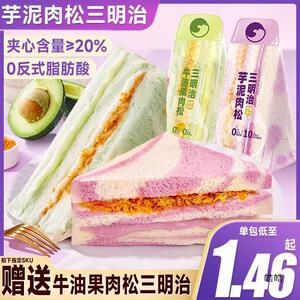 比比赞芋泥肉松三明治彩虹面包早餐整箱夹心吐司零食休闲小吃食品