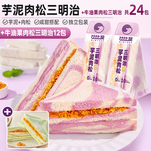 新口味搭配【共24包】芋泥肉松三明治12包+牛油果肉松