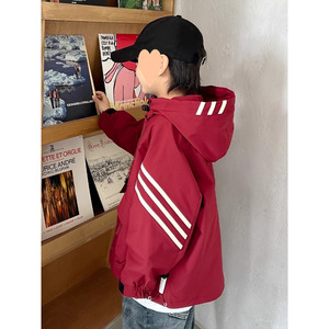 男の子コート 2025 春秋新作子供服男の子春赤い作業着ジャケット大きな子供の春服トレンド