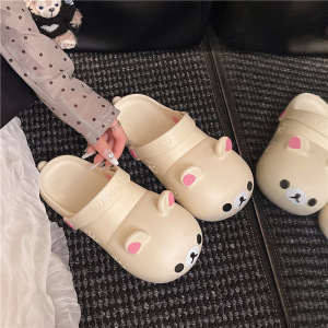 小红书2025网红萌趣亲子轻松熊洞洞鞋百搭外穿软底大头熊凉拖女