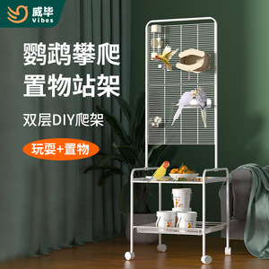 Weibi 秘密の鳥かご収納ラック ケージ棚 可動式鳥用品収納ラック 多層黒鳳鳥かごスタンドケージ
