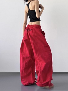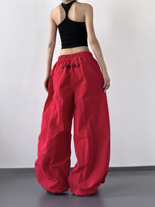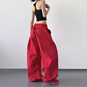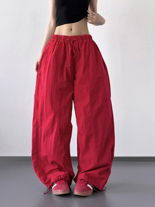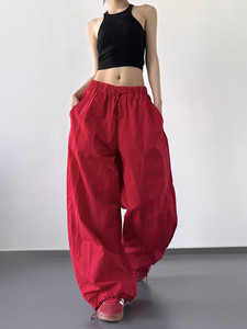 红色速干工装裤女夏季美式运动阔腿休闲辣妹酷飒jazz爵士舞裤子