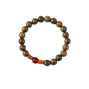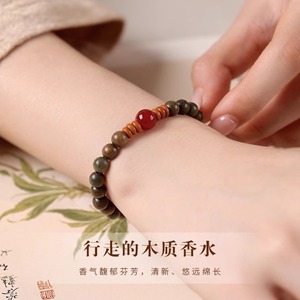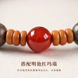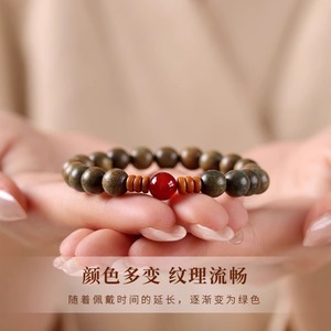 天然绿檀木文玩手串木质佛珠男士女款红玛瑙转运圆珠民族情侣手链