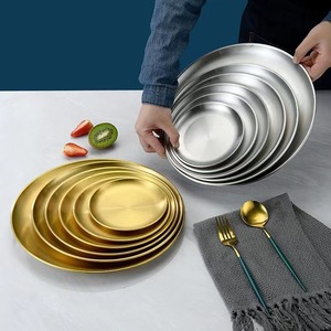 304 韓国ステンレス鋼インスタイルバーベキュー金属トレイインターネット有名人のデザートフルーツトレイ肥厚ラウンドディスク吐き骨トレイ