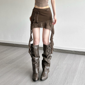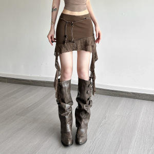 2025 ヨーロッパとアメリカの夏のクロスボーダー新しいスタイル不規則なレースのリボンスリムフィットヒップカバーハイウエスト多用途スカート女性用