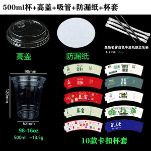 500ml杯+高盖+细吸管+混搭杯套【送防漏纸】