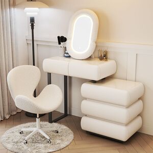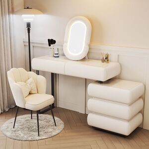 02 無垢材乳白80テーブル+キャビネット+ビューティーミラー+ダンダンスツール