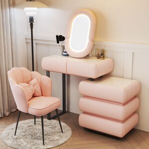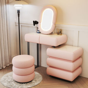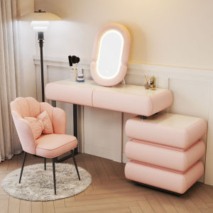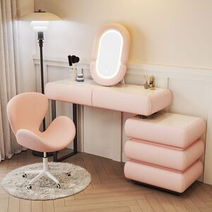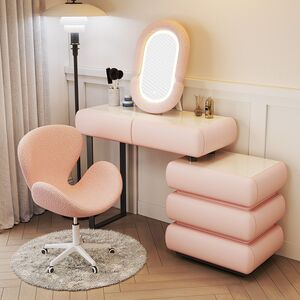 T02 無垢材 ピンク 120 テーブル + キャビネット + ビューティーミラー + ダンダンスツール