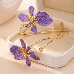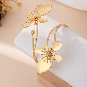 ヨーロッパとアメリカのクロスボーダーサプライ、ファッショナブルでパーソナライズされたエレガントなフラワーブレスレット、アームリング、開口部調整可能なレディースジュエリー