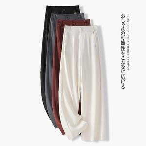 2025 新しいホワイトテンセルウールワイドレッグパンツ女性のための新しい春と秋のスーツパンツハイエンドドレープストレートパンツ