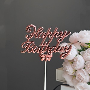 クロスボーダー立体ハッピーバースデーケーキインサートプラスチックホットスタンピングハッピーバースデーケーキデコレーションインサートパーティー用品