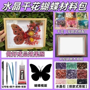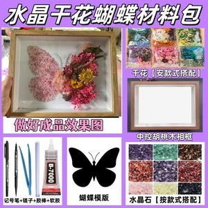 520情人节水晶干花蝴蝶相框紫色春天10寸木框创意礼品纪念手工画