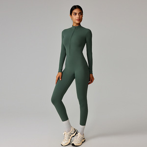 ヨーロッパとアメリカのジッパーヌード長袖ヨガジャンプスーツ高強度フィットネスランニングスポーツジャンプスーツ 8306