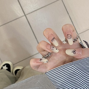 子供用ウェアラブルネイル、超かわいいアップルキティホワイトニングマニキュア、取り外し可能なショートネイル、手描きの甘い女の子イン