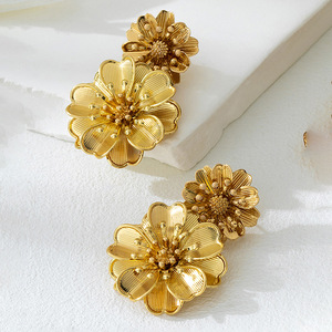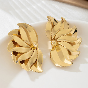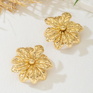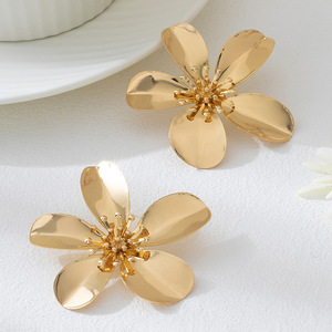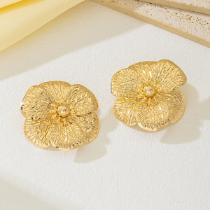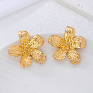 ヨーロッパとアメリカのクロスボーダー気質誇張された黄金の花のイヤリングファッショナブルな個性金属の質感不規則な花びらのイヤリング女性用