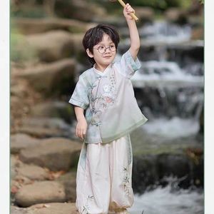 新款2025汉服男童夏季儿童套装中国古风两件中式唐装幼儿园汉服男