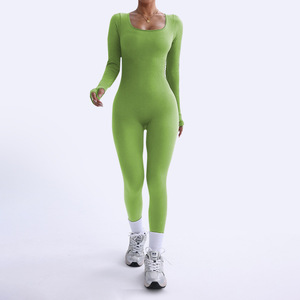 クロスボーダーヨーロッパとアメリカのオールインワンスポーツヨガジャンプスーツ長袖長ズボン速乾性タイトフィットネスワンピースヨガスーツ